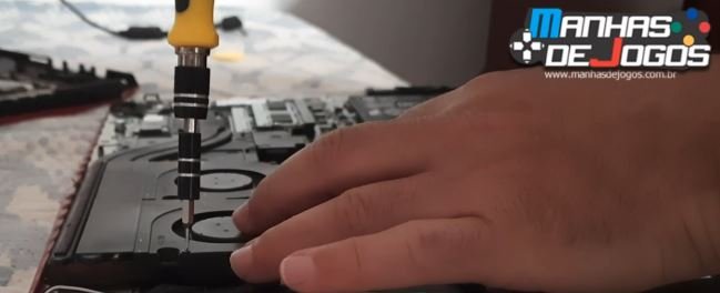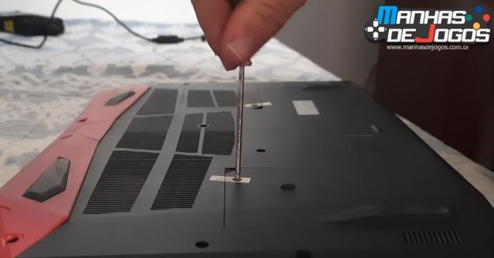 01 – Desligue o notebook e tire todos os parafusos da parte traseira.