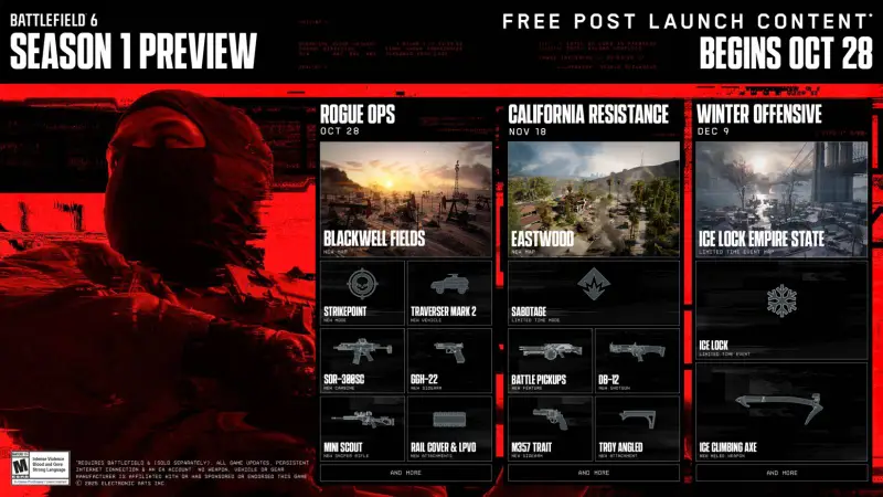A EA divulgou hoje (22) o trailer da Temporada 1 de Battlefield 6 que está programada para começar em 28 de outubro. No vídeo vemos os novos mapas, alguns detalhes e muitas explosões.