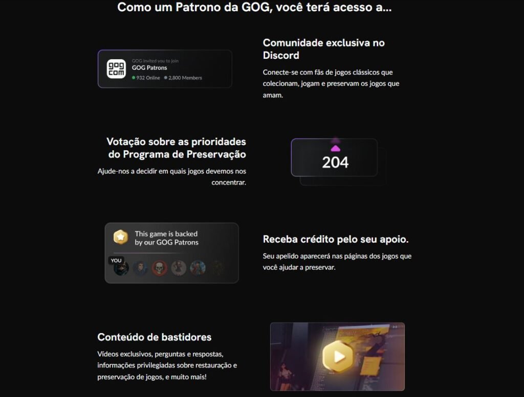Na plataforma GOG já existe um Programa de Preservação de jogos que é sustentado por um sistema de gorjetas, mas agora os usuários podem ajudar fazendo a assinatura de Patrono.