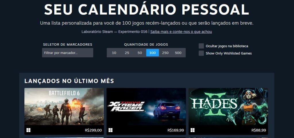 Plataforma Steam liberou a nova ferramenta chamada Calendário Pessoal
