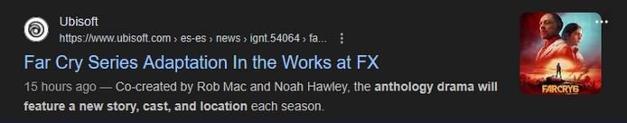 A Ubisoft sem querer revelou em sua página oficial que a FX está produzindo uma série baseada no jogo Far Cry. Quando descobriu o erro a publicação foi removida mas um usuário conseguiu capturar o título da postagem.