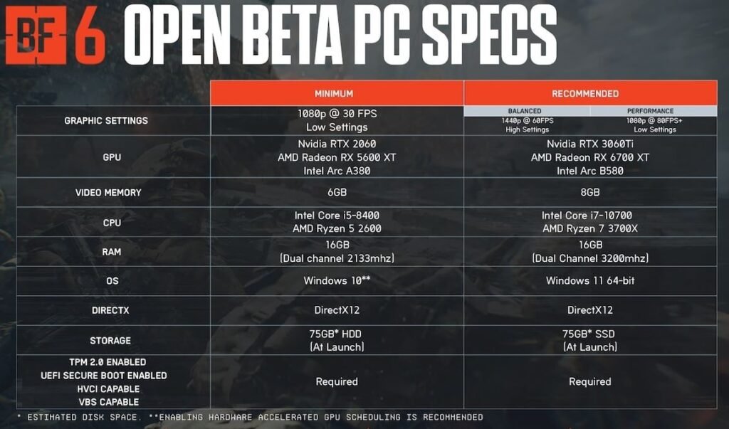 Se você quiser jogar pelo menos no mínimo precisa ter um processador parecido com o Intel Core i5-8400 ou AMD Ryzen 5 2600, 16 GB de RAM e uma placa de vídeo parecida com a Nvidia RTX 2060 ou AMD Radeon RX 5600 XT 6GB.